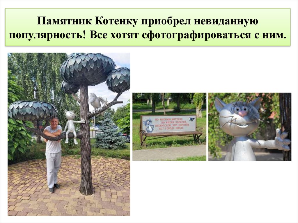 Памятник Котенку приобрел невиданнуюпопулярность! Все хотят сфотографироваться с ним.