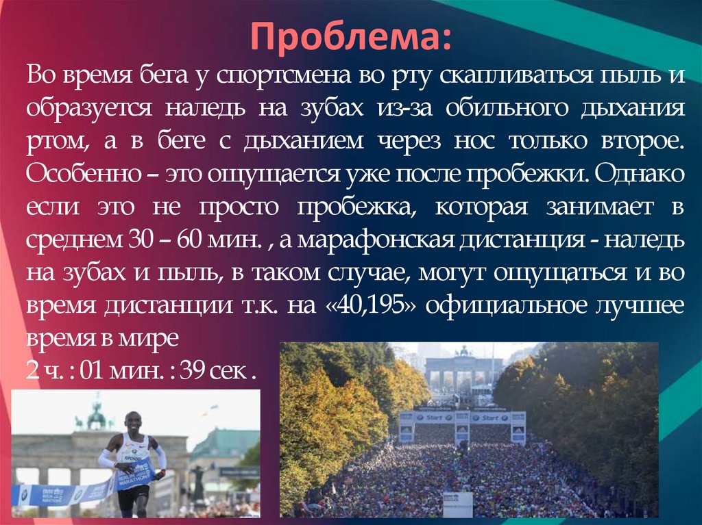 Проблема:Во время бега у спортсмена во рту скапливаться пыль и