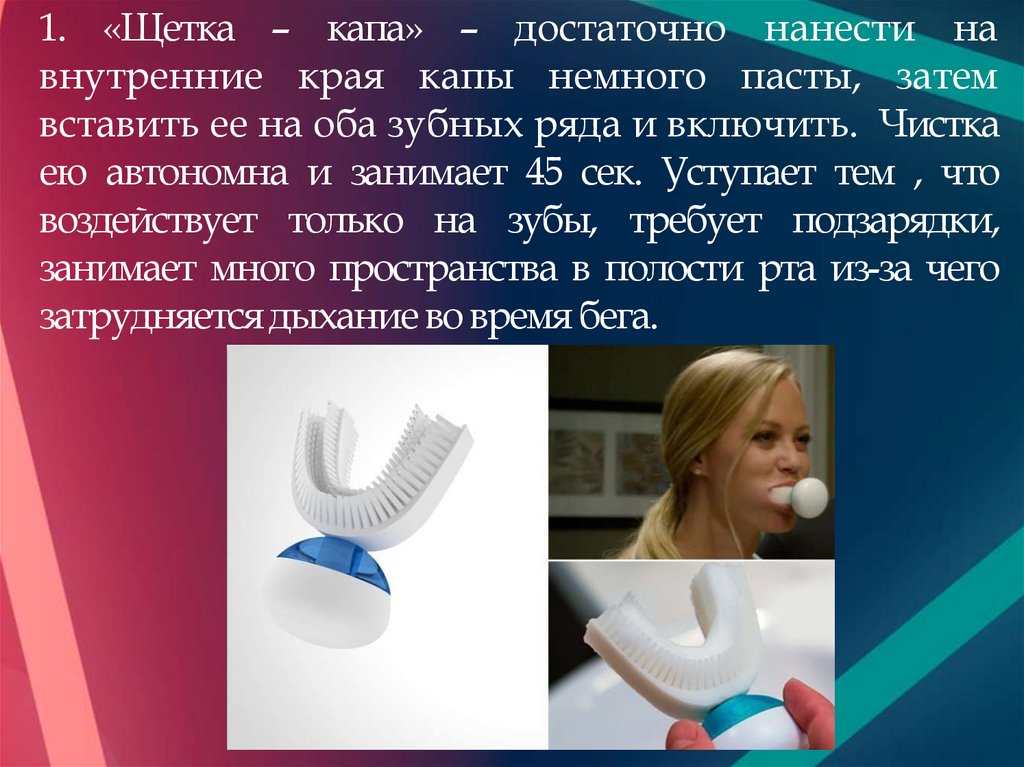 1. «Щетка – капа» – достаточно нанести навнутренние края капы немного пасты, затем