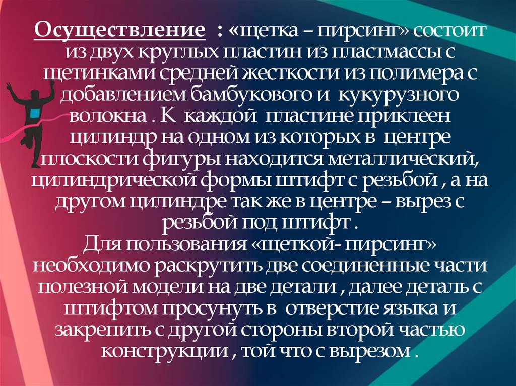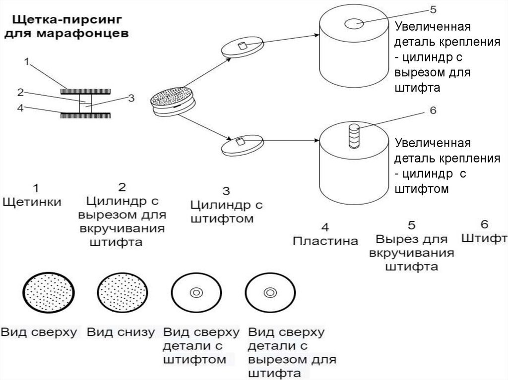 Осуществление : «щетка – пирсинг» состоитиз двух круглых пластин из пластмассы с