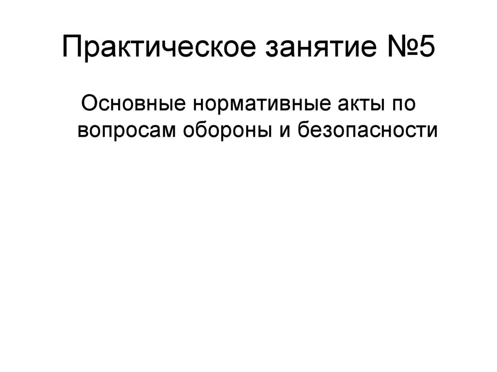 2. Цель занятия: - изучить краткое содержание действующих нормативных актов по вопросам обороны и безопасности.