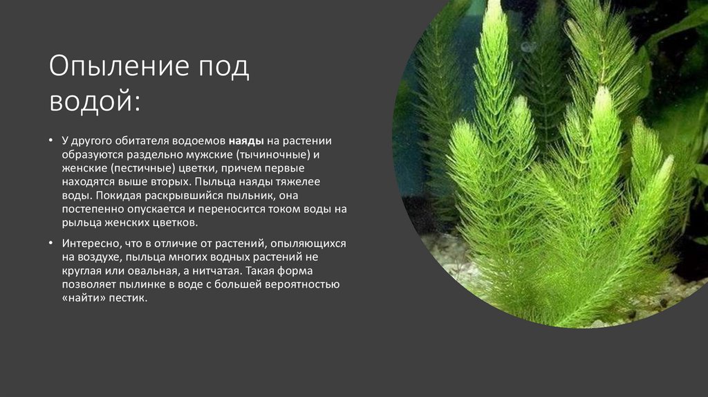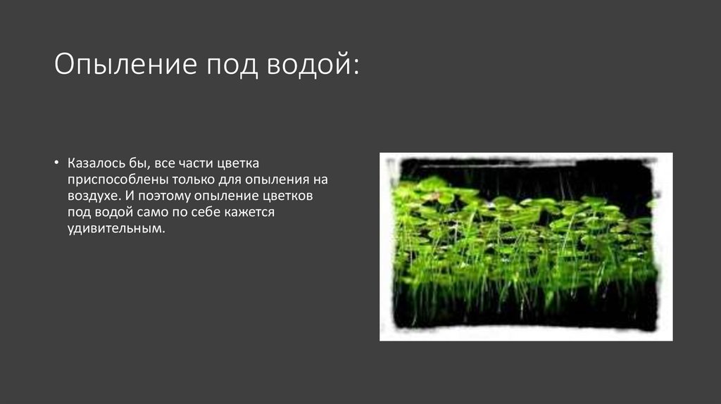 Опыление под водой:• Его можно наблюдать, например,
