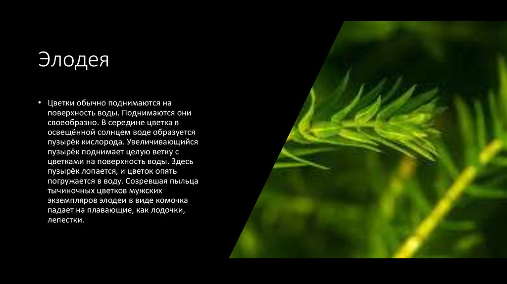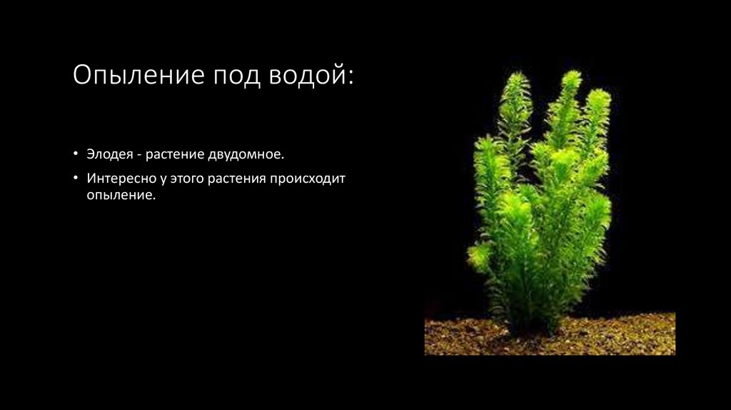 Опыление под водой:• Элодея - растение двудомное.