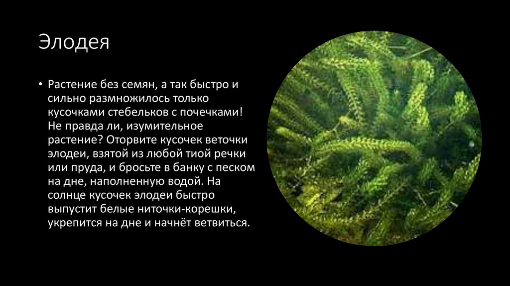 Элодея• Растение без семян, а так быстро и