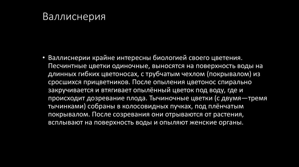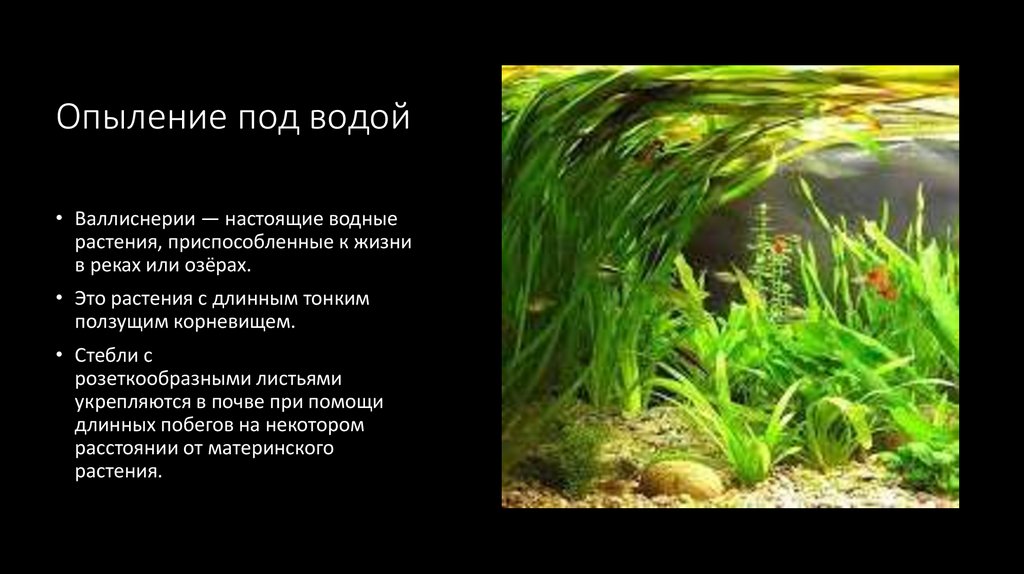 Опыление под водой• Валлиснерии — настоящие водные