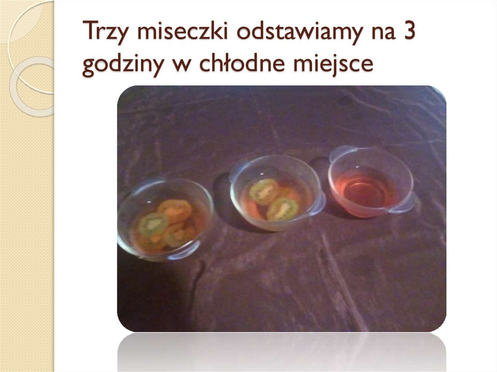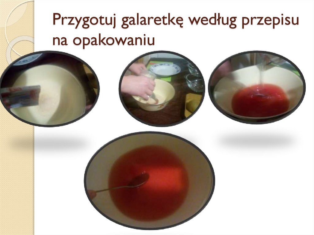 Gotową galaretkę rozlewamy dotrzech miseczek