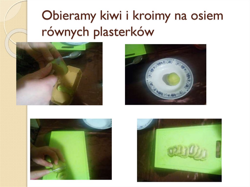 Obieramy kiwi i kroimy na osiemrównych plasterków