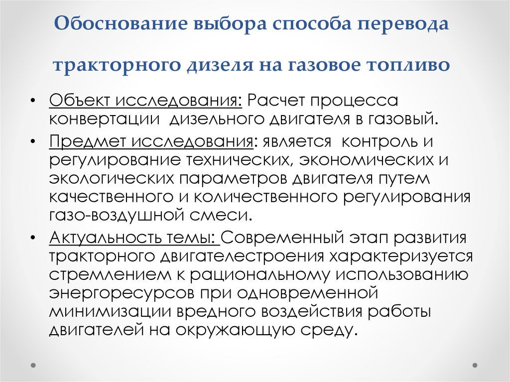 Обоснование выбора способа переводатракторного дизеля на газовое топливо