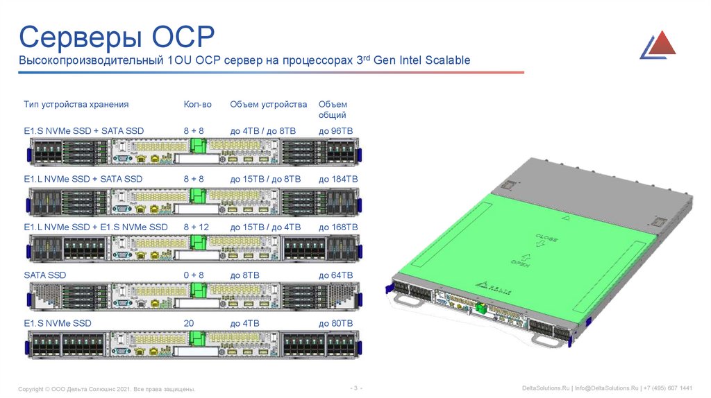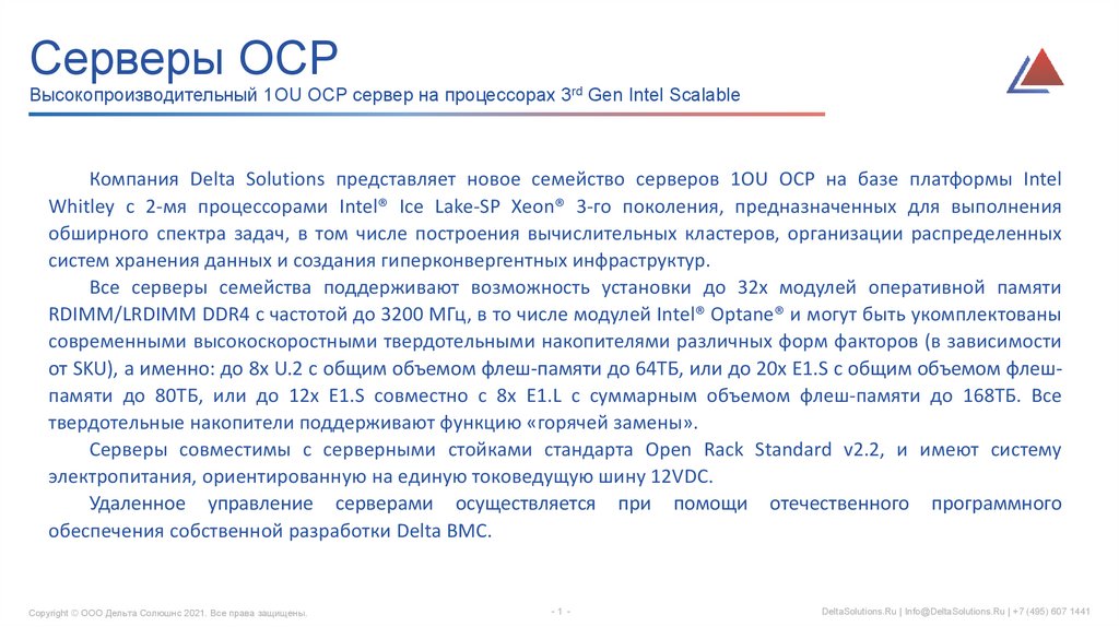 Компания Delta Solutions представляет новое семейство серверов 1OU OCP на базе платформы Intel