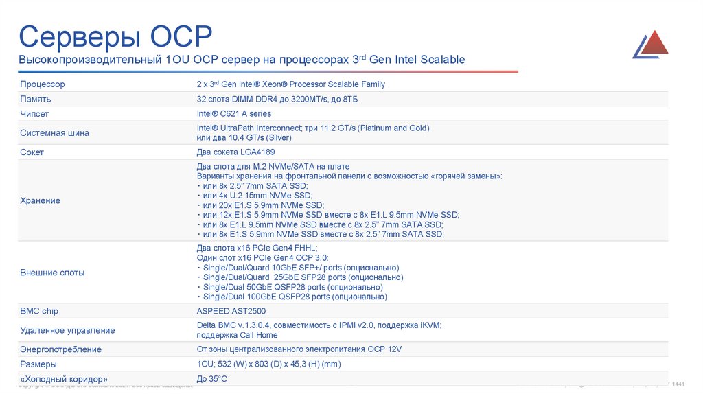 Серверы OCP. Высокопроизводительный 1OU OCP сервер на процессорах 3rd