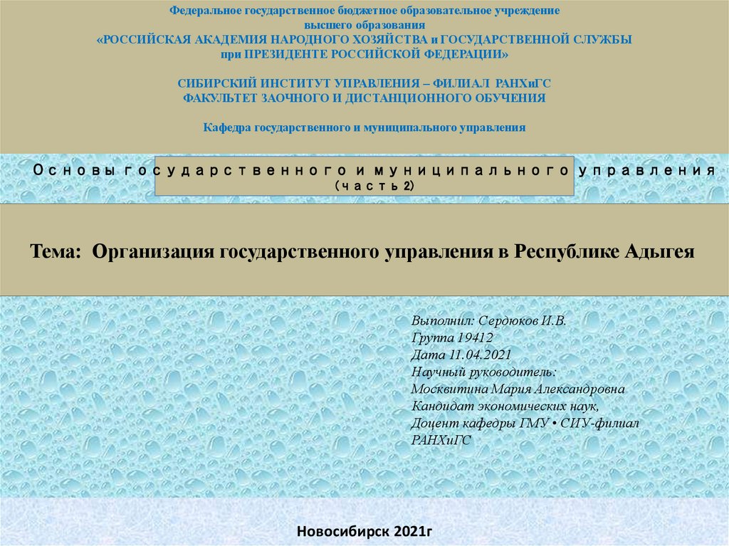 Тема: Организация государственного управления в Республике Адыгея