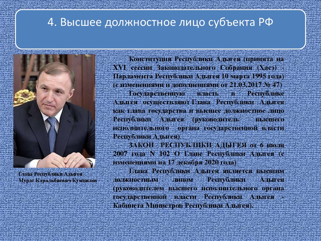 4. Высшее должностное лицо субъекта РФГлава Республики Адыгея