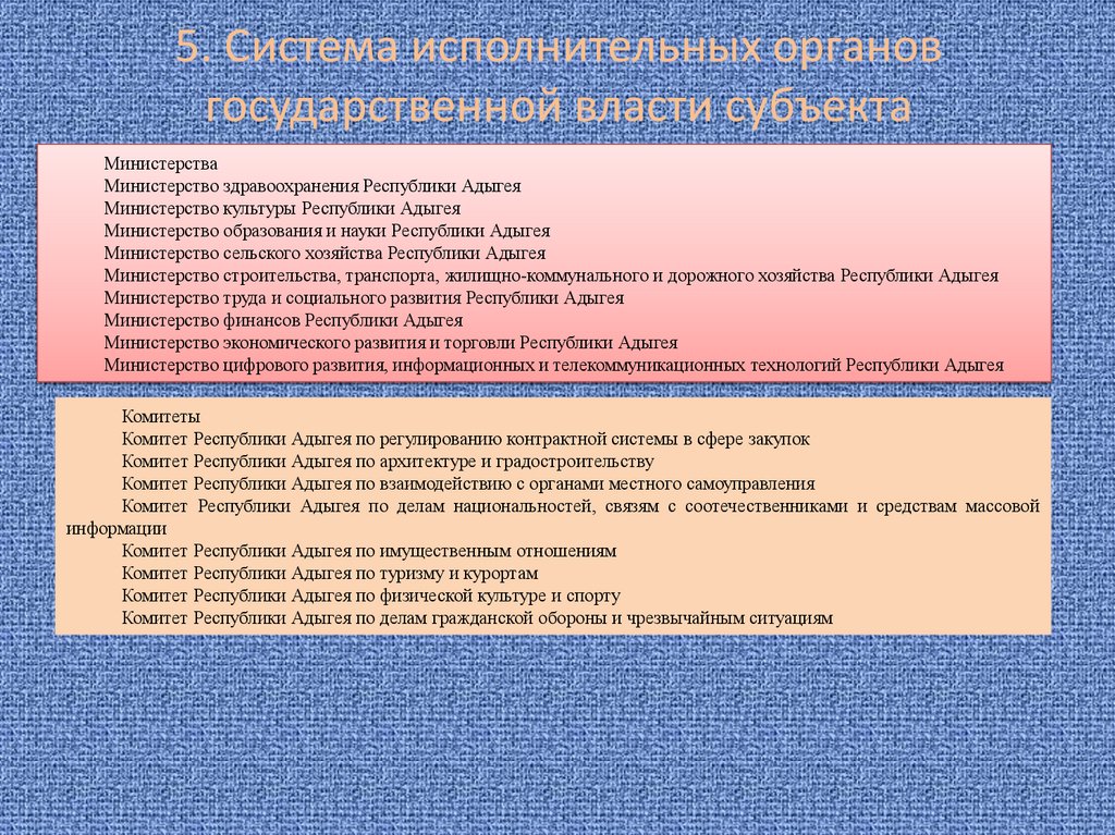 5. Система исполнительных органовгосударственной власти субъекта