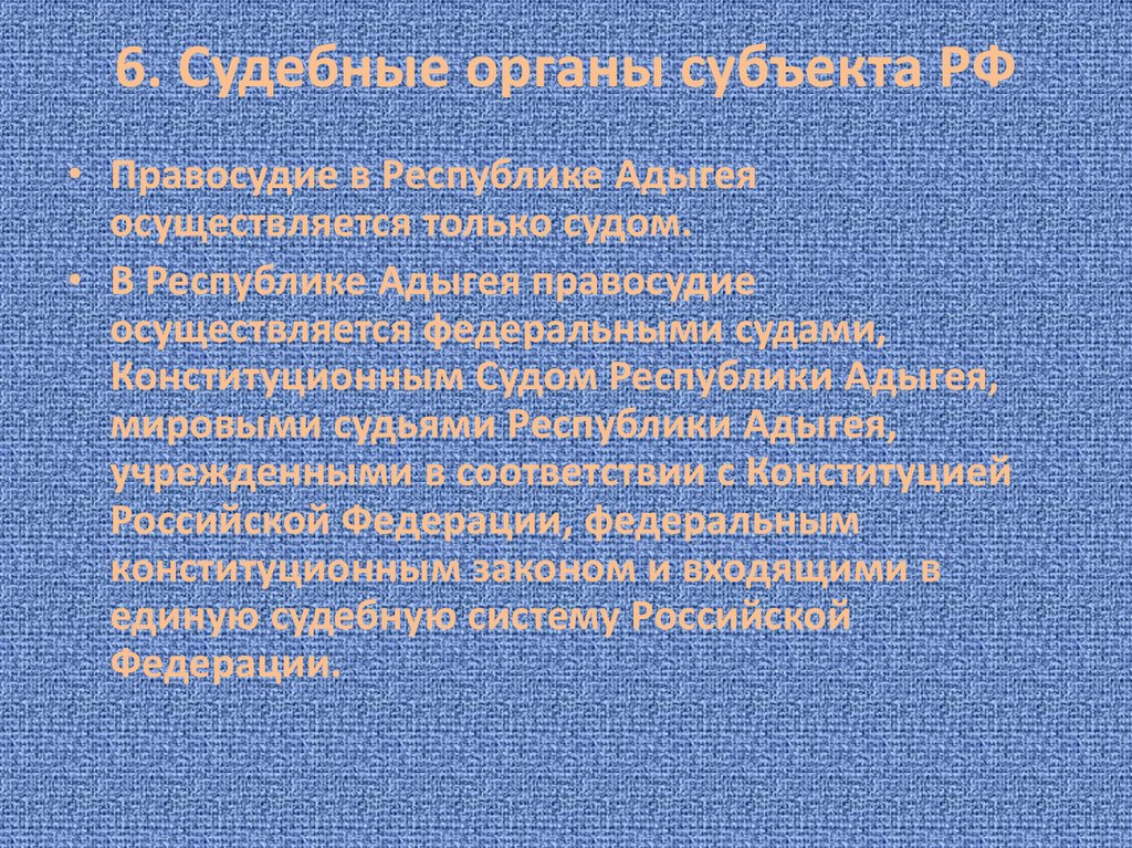 6. Судебные органы субъекта РФ• Правосудие в Республике Адыгея