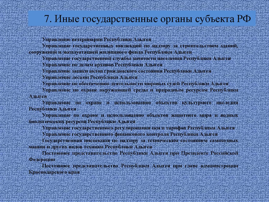• 7. Иные государственные органы субъекта РФ.