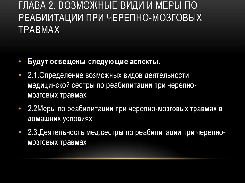 • 2.2Меры по реабилитации при черепно-мозговых травмах в