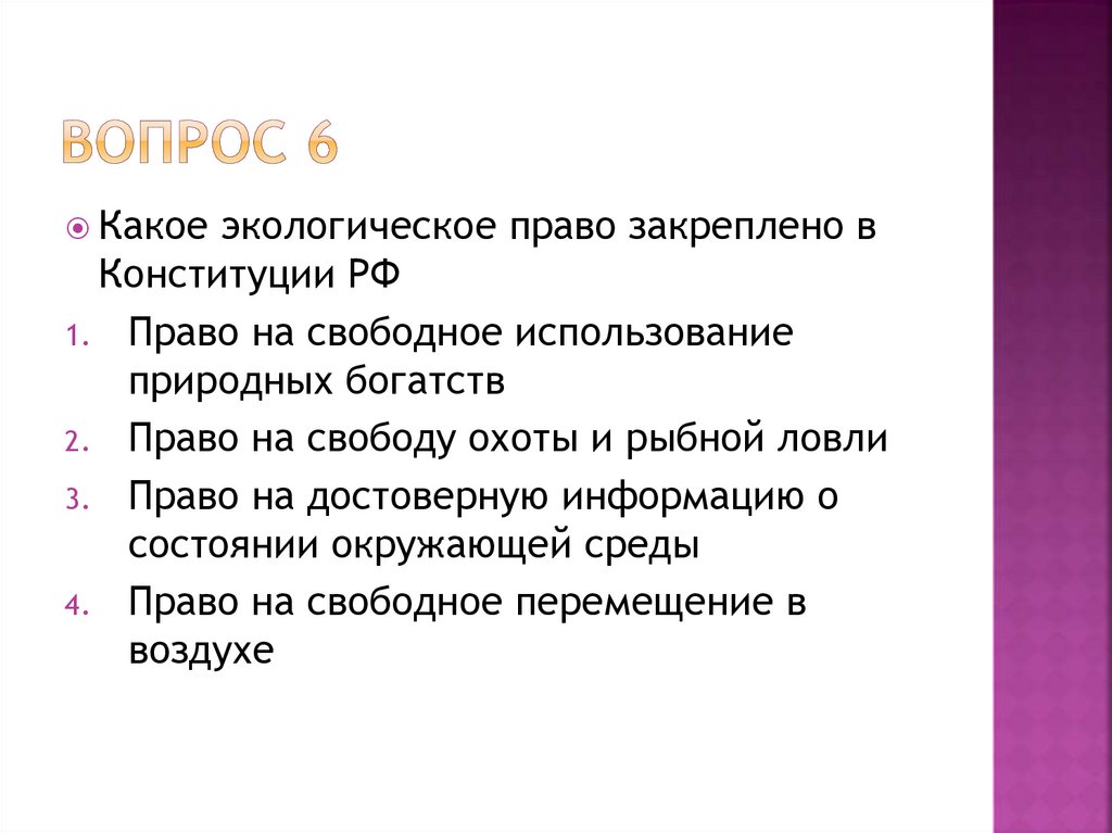 Какоеэкологическое право закреплено в