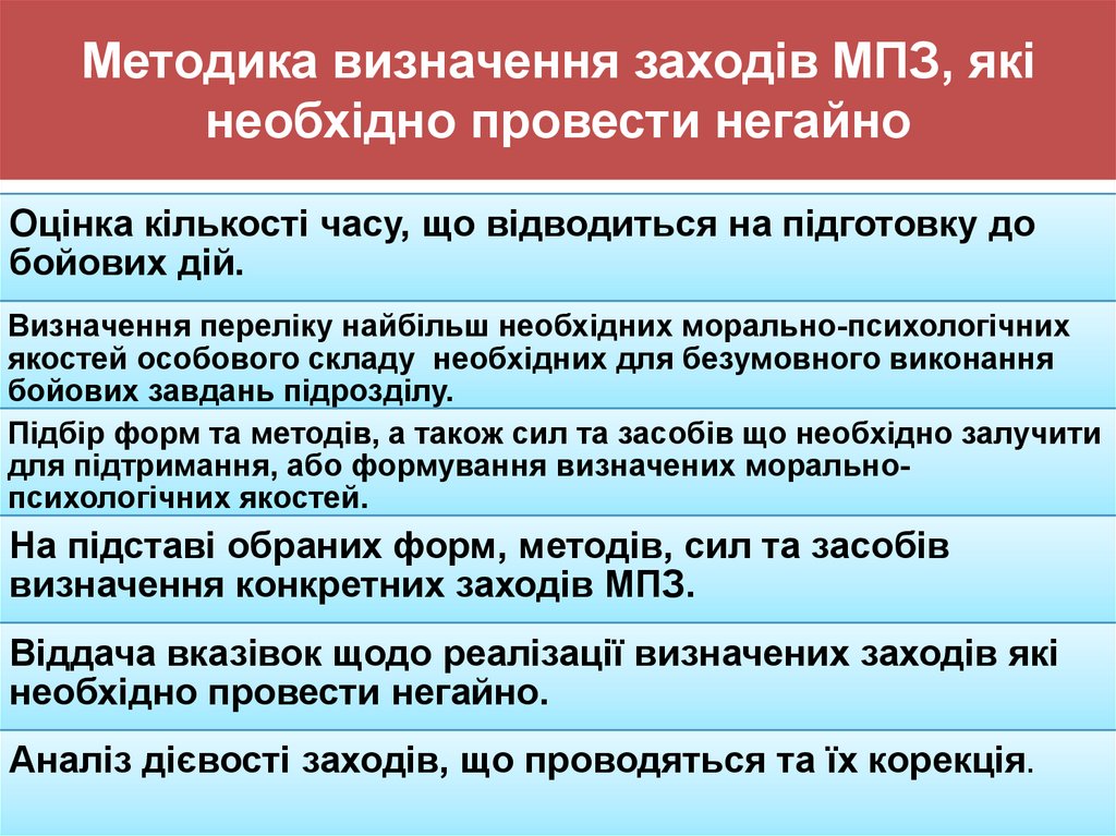 майбутніх дій та першочергові заходи моральнопсихологічного забезпечення.