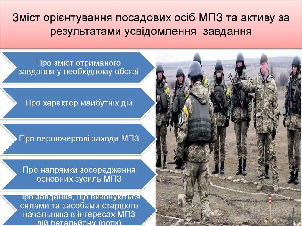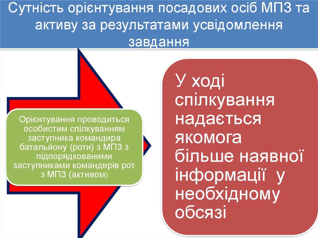 Зміст орієнтування посадових осіб МПЗ та активу зарезультатами усвідомлення завдання