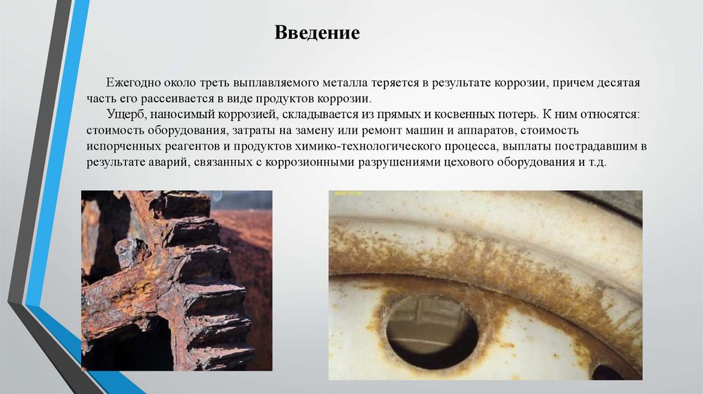 ВведениеЕжегодно около треть выплавляемого металла теряется в результате коррозии, причем десятая