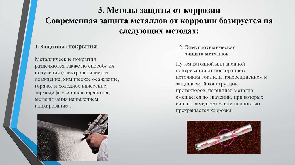 3. Методы защиты от коррозииСовременная защита металлов от коррозии базируется на