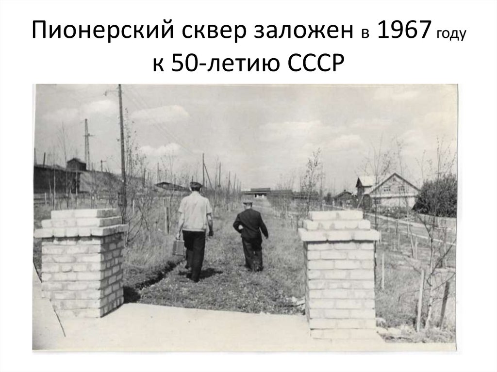 Пионерский сквер заложен в 1967 годук 50-летию СССР