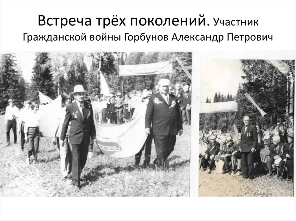 Встреча трёх поколений. УчастникГражданской войны Горбунов Александр Петрович