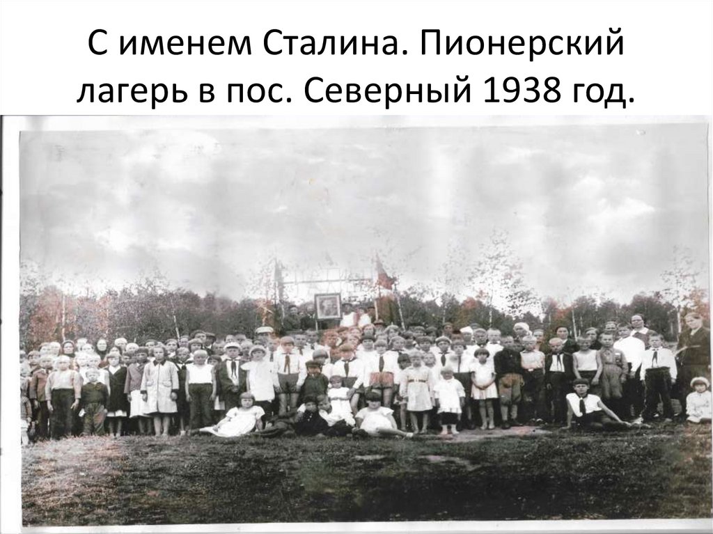 С именем Сталина. Пионерскийлагерь в пос. Северный 1938 год.