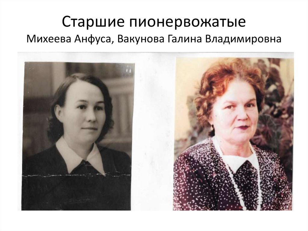 Старшие пионервожатыеМихеева Анфуса, Вакунова Галина Владимировна