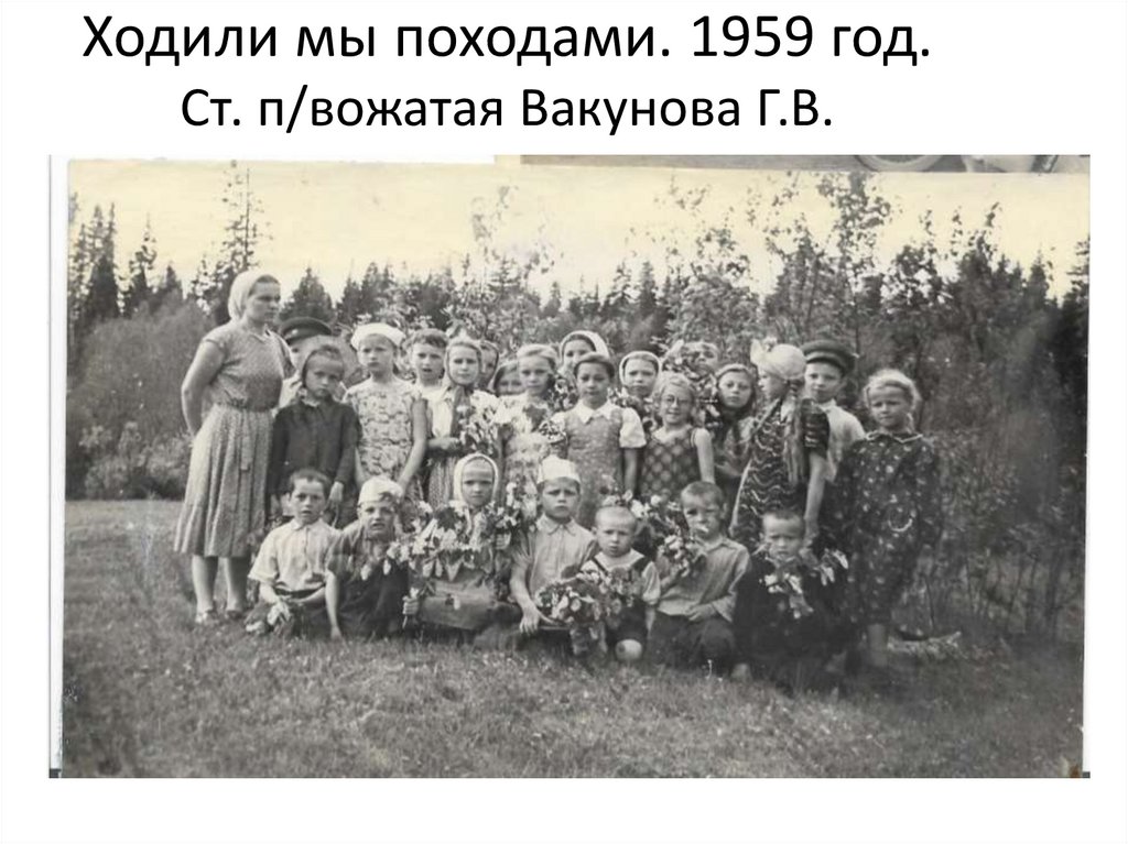 Ходили мы походами. 1959 год.Ст. п/вожатая Вакунова Г.В.