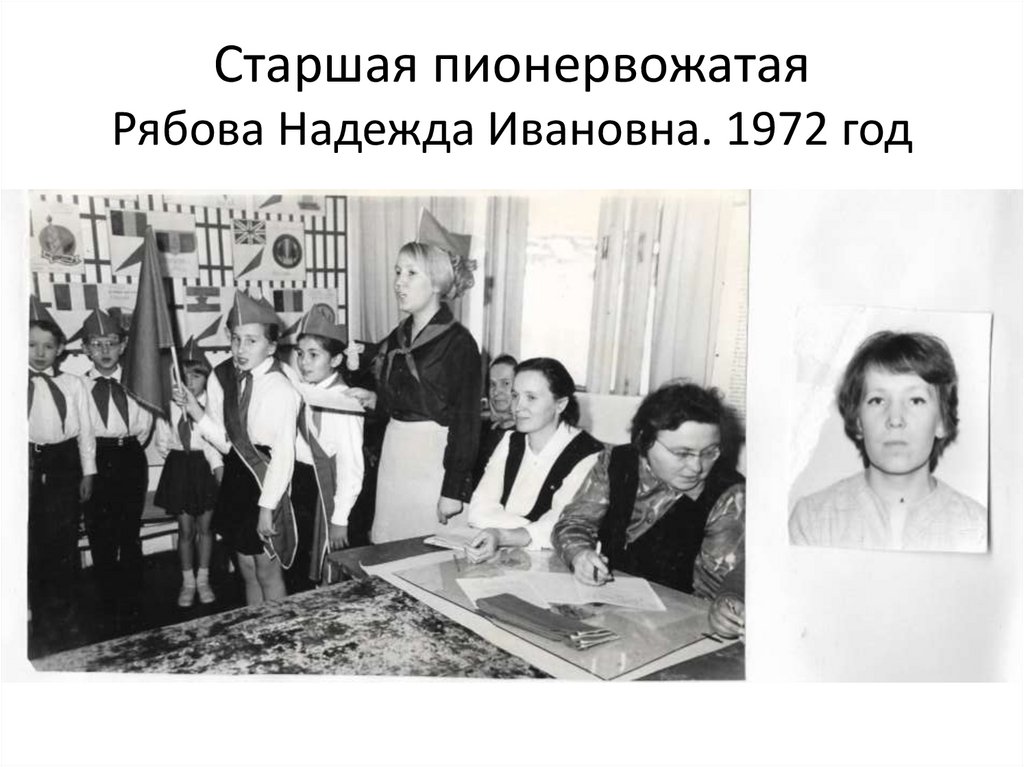 Старшая пионервожатаяРябова Надежда Ивановна. 1972 год