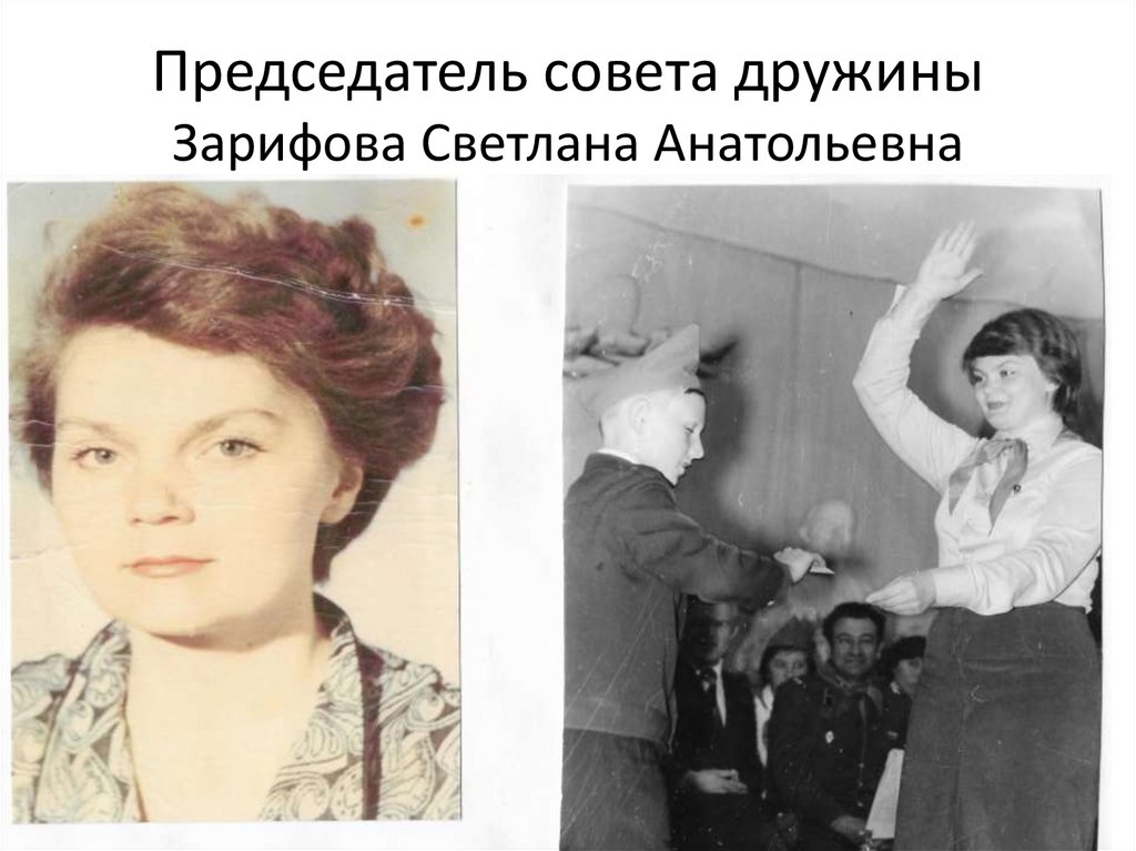 Председатель совета дружиныЗарифова Светлана Анатольевна