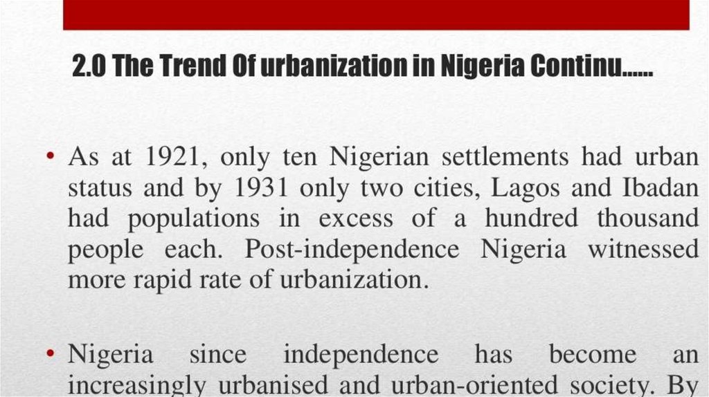 Topic-the promblem of urbanization in Nigeria