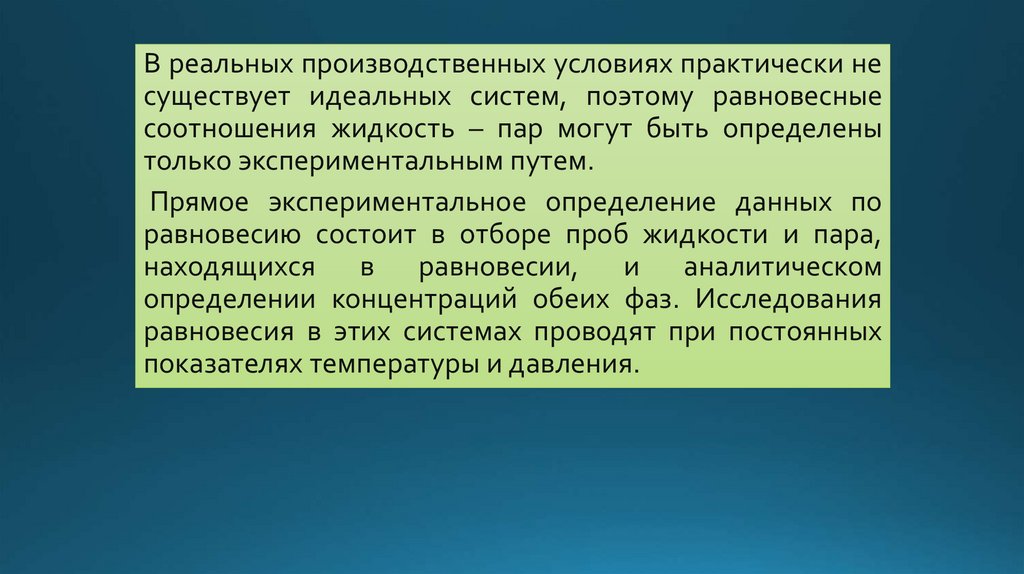 В реальных производственных условиях практически несуществует идеальных систем, поэтому равновесные