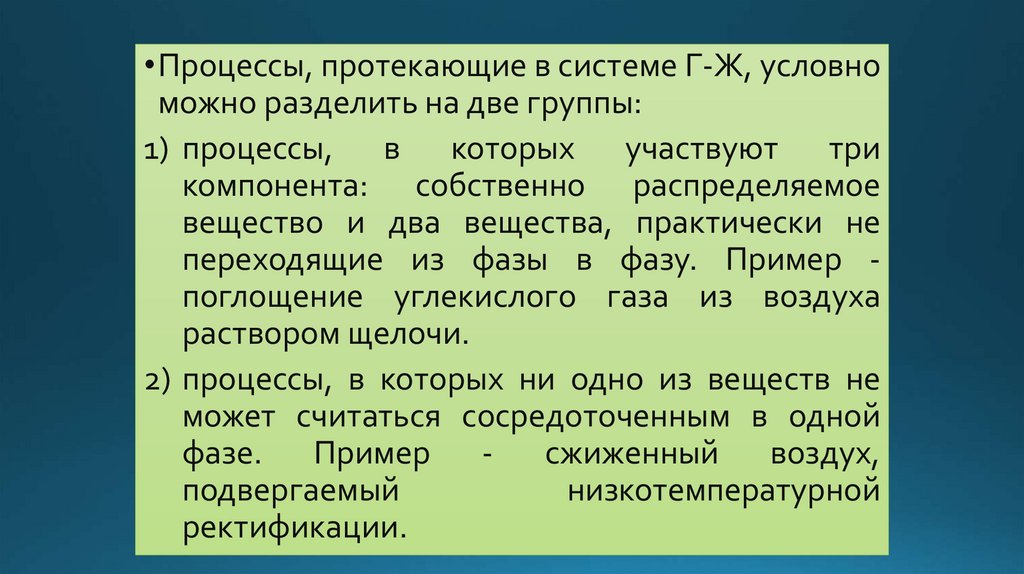 •Процессы, протекающие в системе Г-Ж, условноможно разделить на две группы: