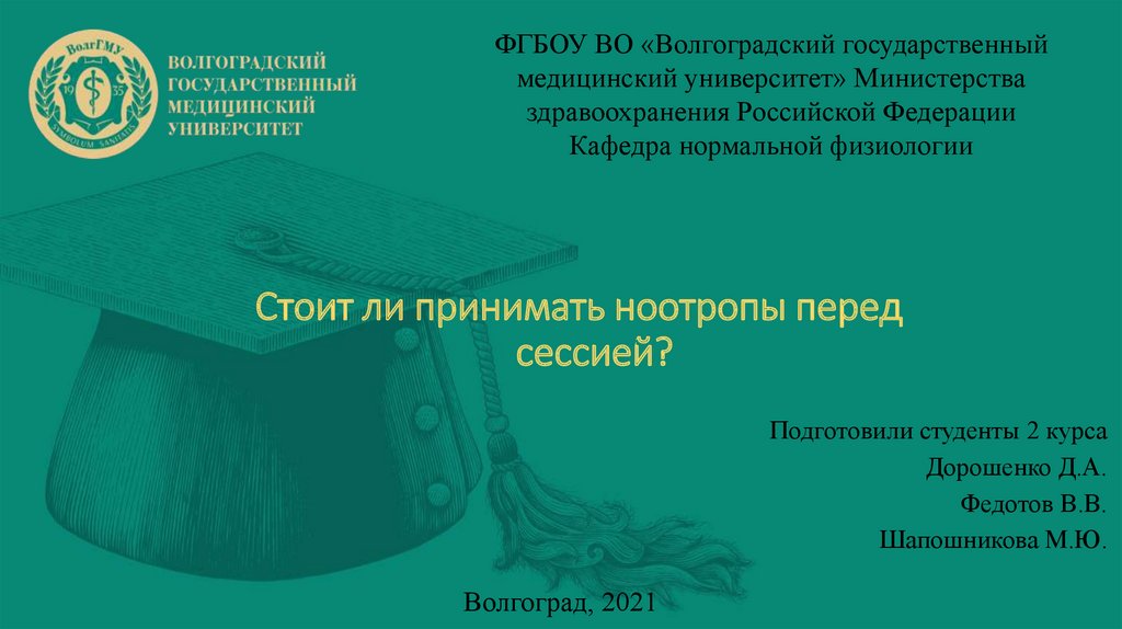 ФГБОУ ВО «Волгоградский государственныймедицинский университет» Министерства