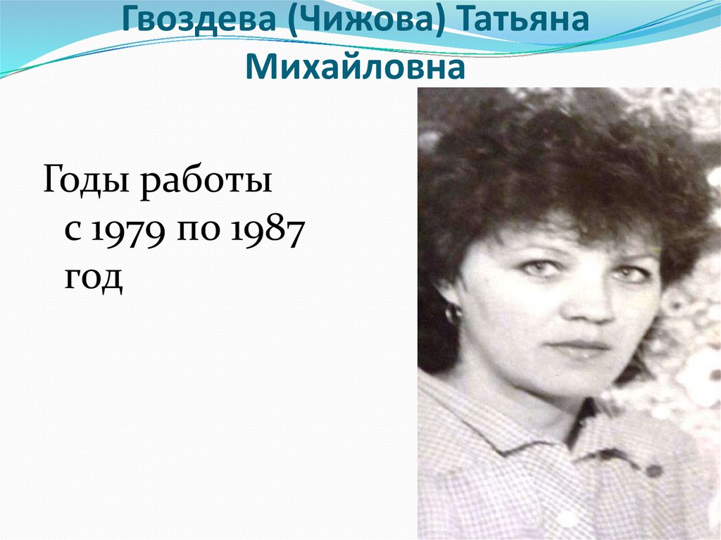 Хурасьева (Токаревских) ТатьянаАнатольевна. Годы работы с 1987 – 1991 год