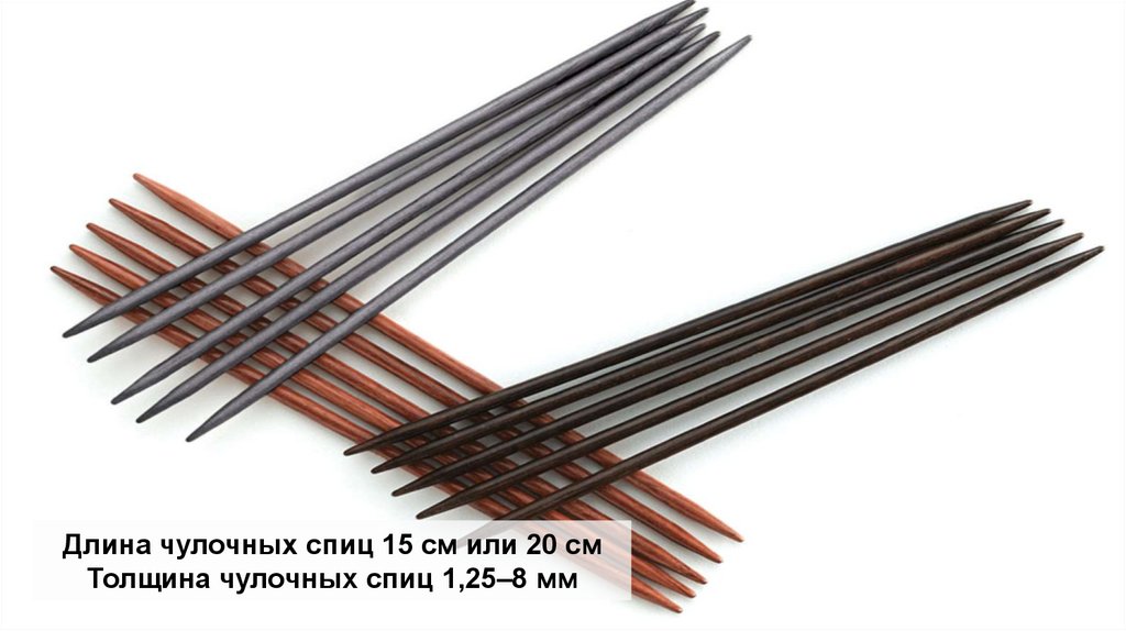Длина чулочных спиц 15 см или 20 смТолщина чулочных спиц 1,25–8 мм