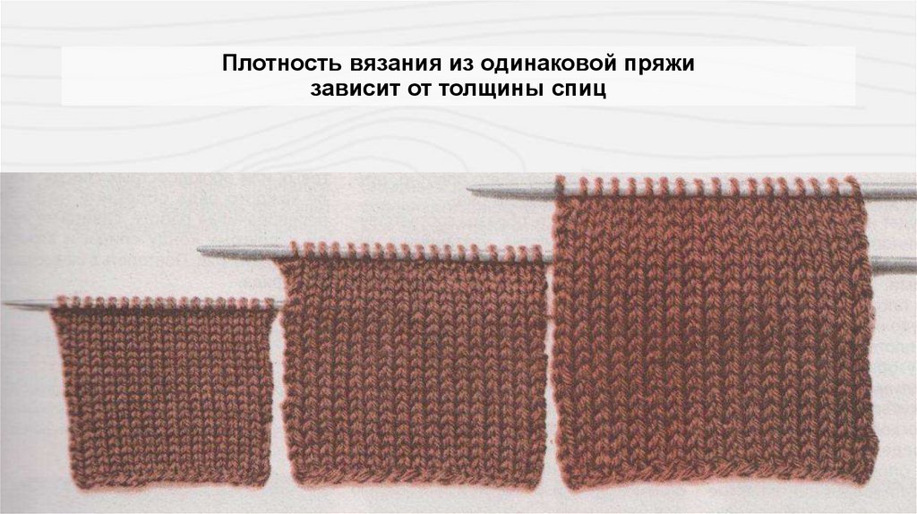 Плотность вязания из одинаковой пряжизависит от толщины спиц