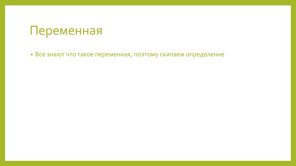 ПеременнаяВсе знают что такое переменная, поэтому скипаем определение