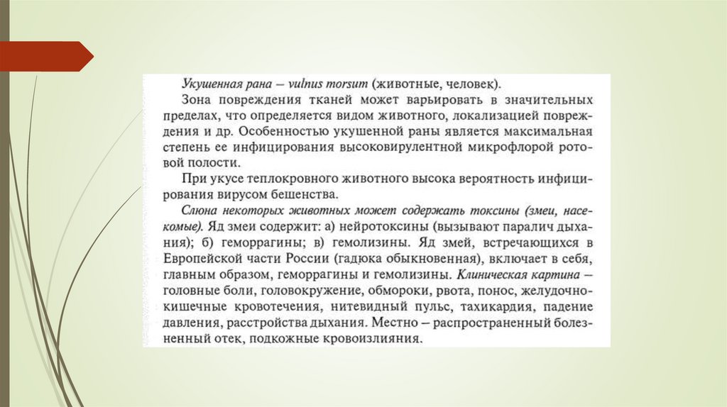 Основные признаки раныОсновными признаками раны являются болевой синдром,