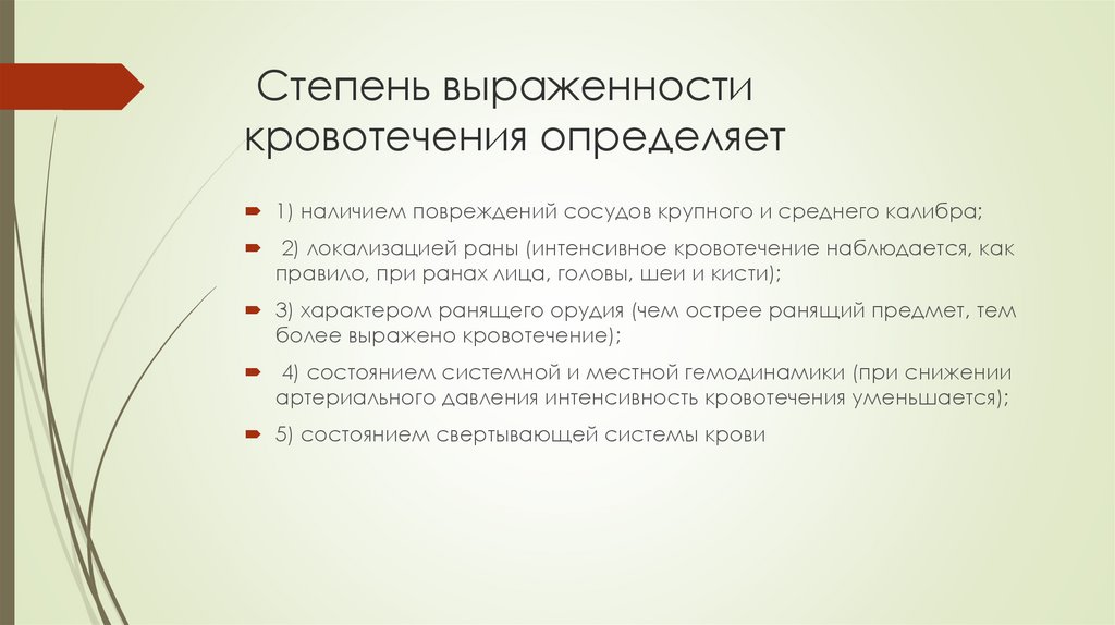 2) локализацией раны (интенсивное кровотечение наблюдается, как