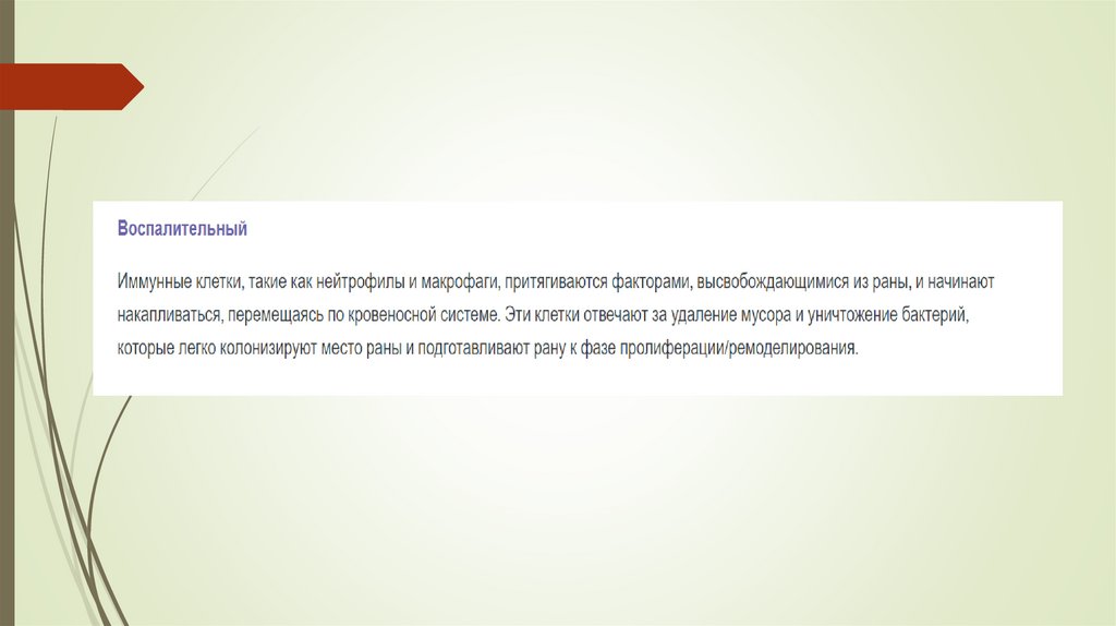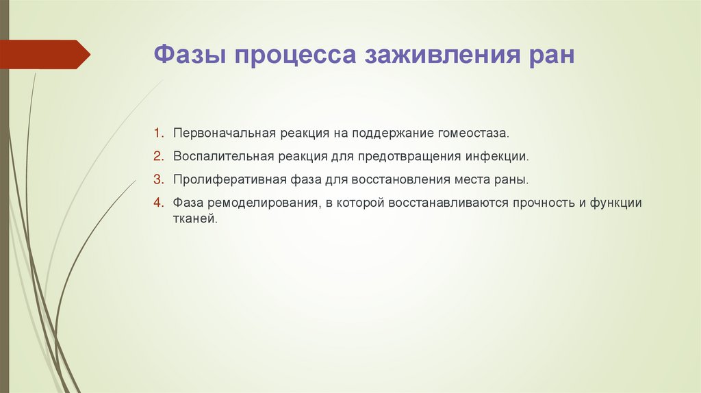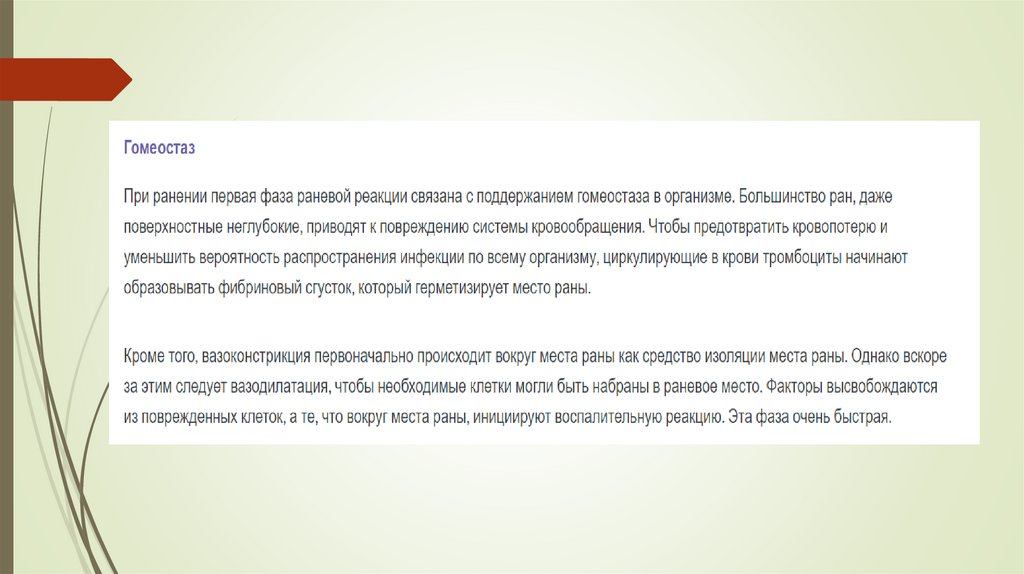 Фазы процесса заживления ран1. Первоначальная реакция на поддержание гомеостаза.