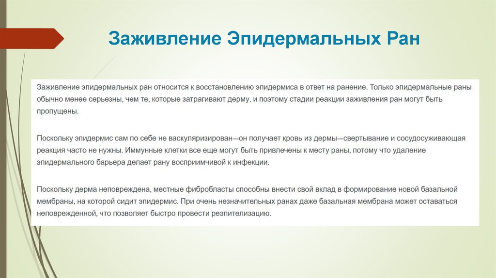 Заживление ранэто процесс, посредством которого кожа или любой поврежденный