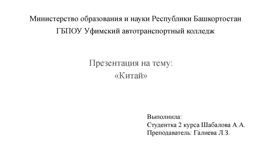 Министерство образования и науки Республики БашкортостанГБПОУ Уфимский автотранспортный колледж
