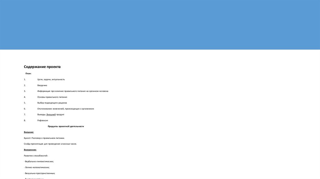 Содержание проектаПлан: