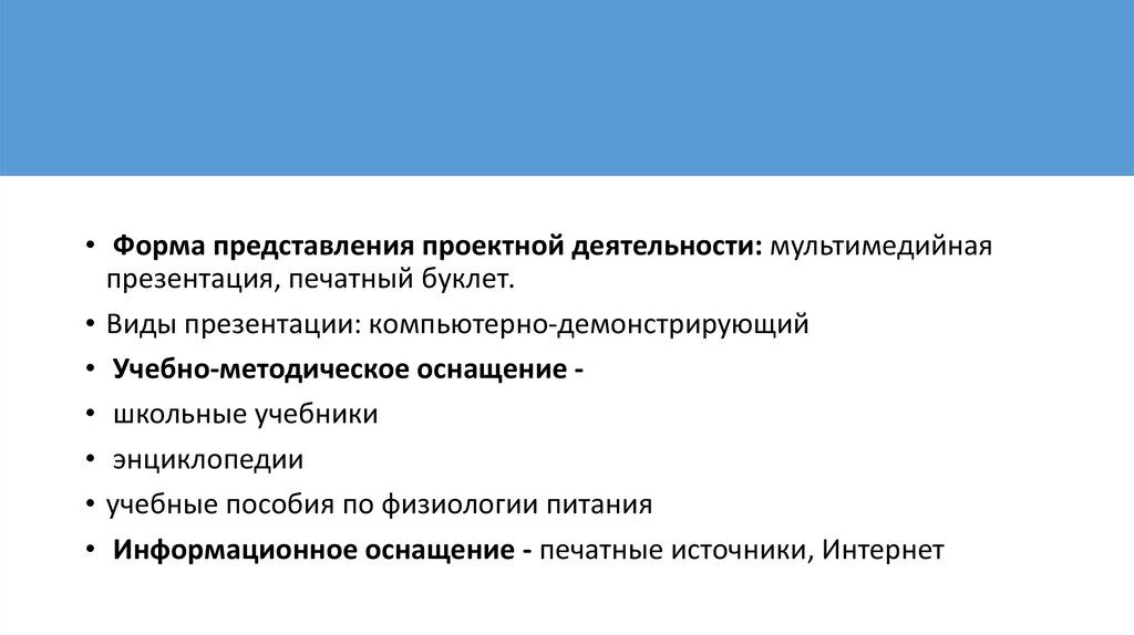 • Форма представления проектной деятельности: мультимедийнаяпрезентация, печатный буклет.