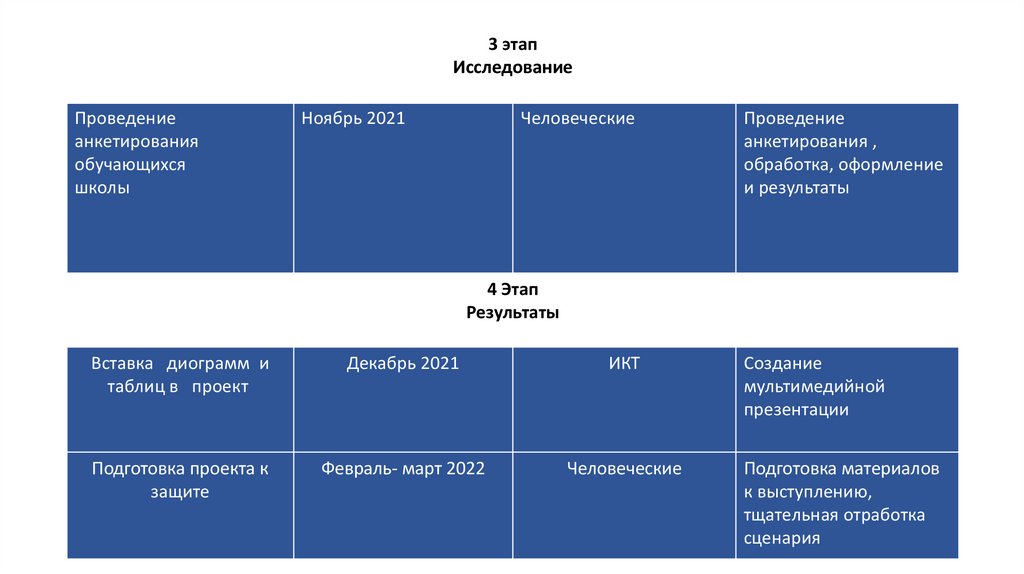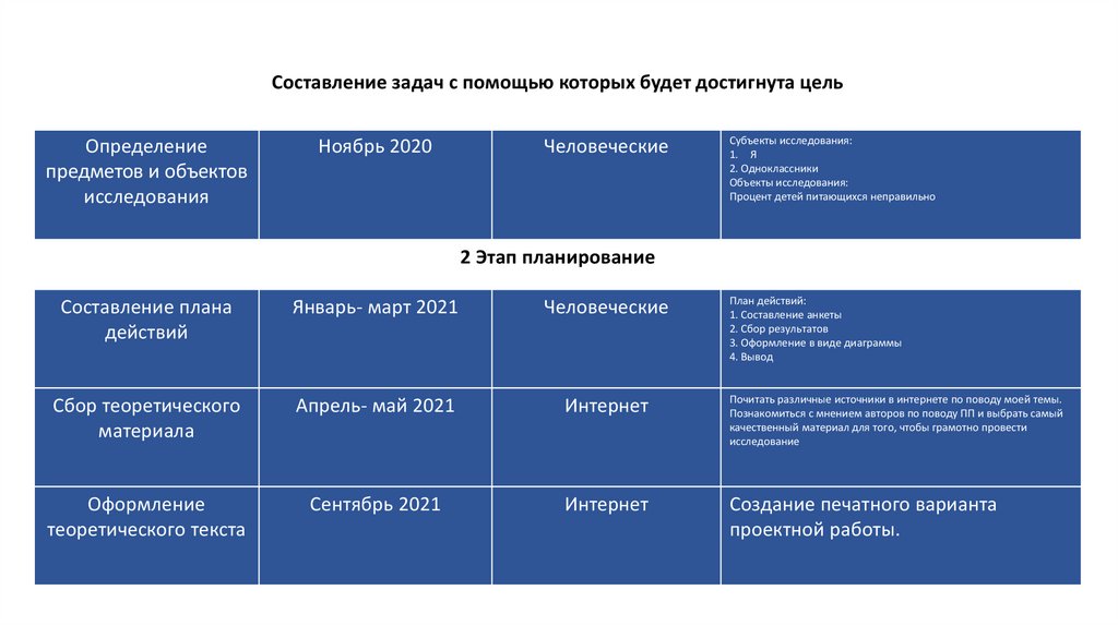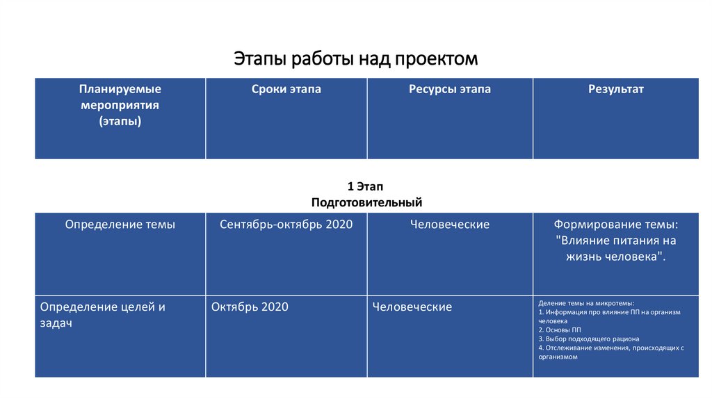 Этапы работы над проектомПланируемые