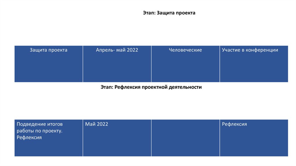 Этап: Рефлексия проектной деятельности