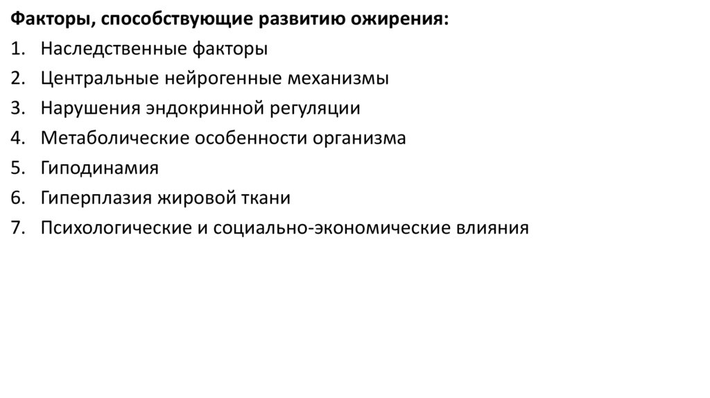 Факторы, способствующие развитию ожирения:1. Наследственные факторы